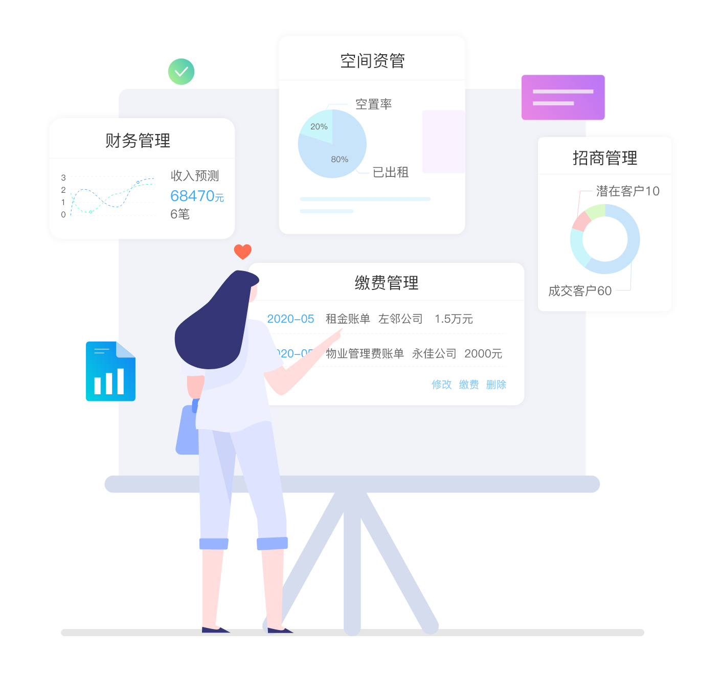 精準(zhǔn)盤點,一手掌握各項經(jīng)營數(shù)據(jù)租金、停車費、物業(yè)費、訂單分布情況等